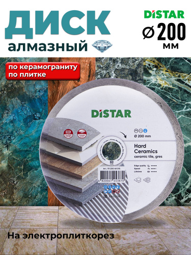Дистар Диск алмазный 200х25,4х1,6 по плитке и керамограниту/ на электроплиткорез А03200