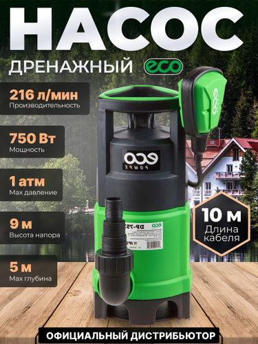 Погружной насос дренажный ECO DP-753, 750 Вт, 13000 л/ч, 9 м