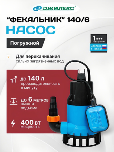 ФЕКАЛЬНИК 140/6 ДЖИЛЕКС, фекальный погружной насос для септика, грязной и чистой воды.