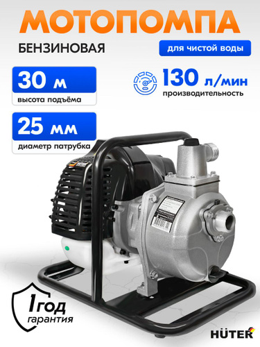Мотопомпа бензиновая для чистой воды Huter MP-25/ поверхностный насос мощность 1.5 лс
