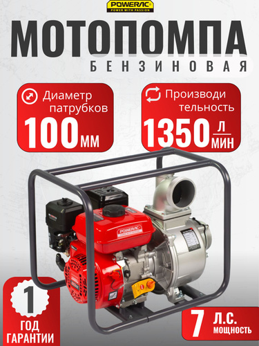 Мотопомпа бензиновая / поверхностный насос PRWP40B (100мм, 7л.с, 1350 л/мин) Powerac