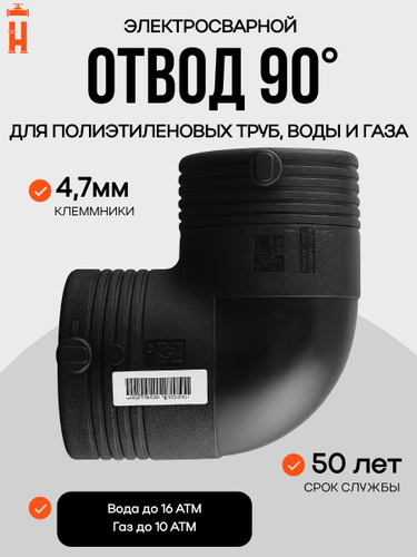 Отвод ПНД d50 электросварной угол 90 градусов SDR11 ПЭ100 для соединения труб