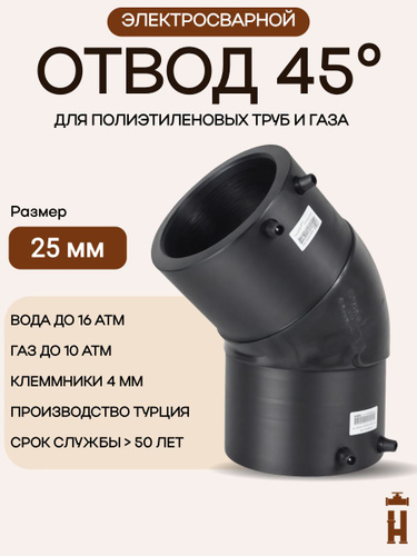 Отвод 90 градусов для ПНД труб электросварной d25мм ПЭ100 SDR11