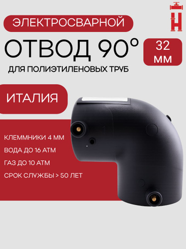Отвод (Угол 90 градусов) 32мм ПЭ100 SDR11 электросварной - 10шт
