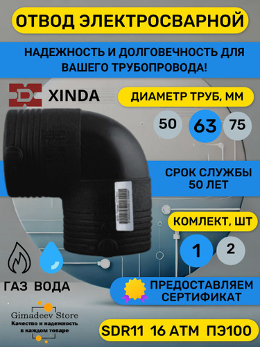 Отвод электросварной D 63 угол 90 ПЭ100 SDR11 Xinda фитинги для пнд трубы 63