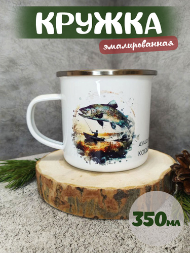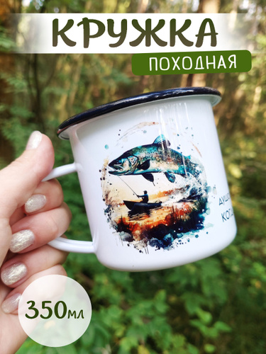 Кружка "Когда клюет" эмалированная, 350мл, походная с принтом, подарочная