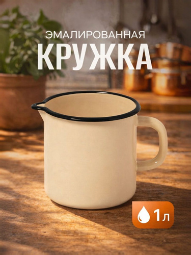 Кружка эмалированная, 1 л, с носиком, без декора, слоновая кость