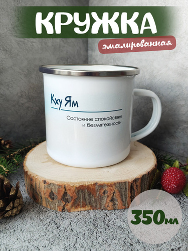Кружка с серебристым ободком "Безмятежность" 350мл металлическая, эмалированная походная, подарочная