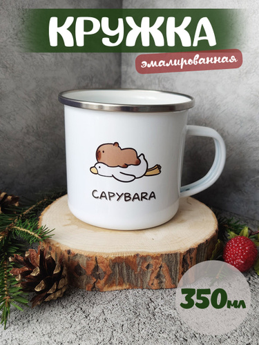 Кружка с серебристым ободком "Капибара" 350мл металлическая, эмалированная походная, подарочная