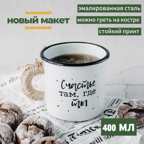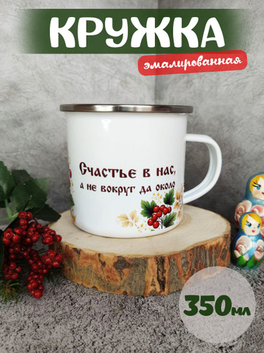 Кружка металлическая эмалированная "Счастье там,где ты"