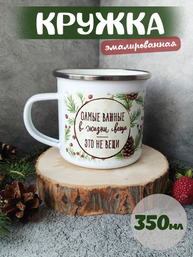 Кружка с серебристым ободком "Важные вещи" 350мл металлическая, эмалированная походная, подарочная