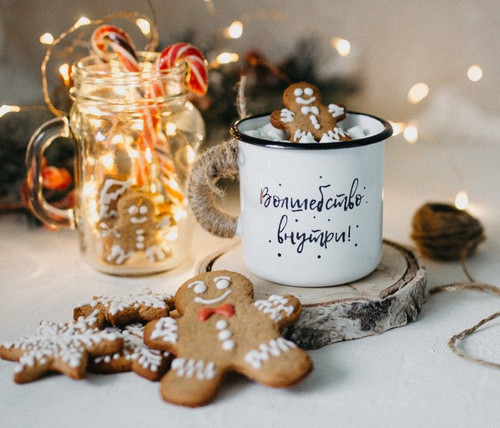 Кружка с серебристым ободком "Печенье" 350мл металлическая, эмалированная походная, подарочная