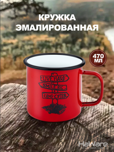 Кружка походная 350мл, эмалированная железная "Поход", подарочная
