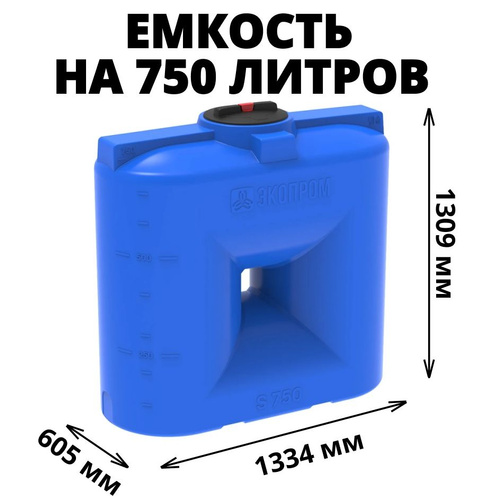 Емкость/бак на 750 литров (цвет-синий) прямоугольная для воды, техн. жидкостей, диз. топлива (S750 New) Экопром