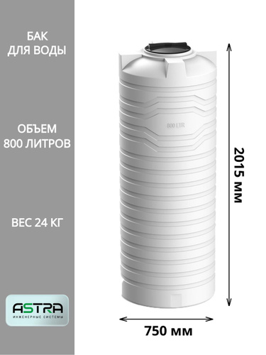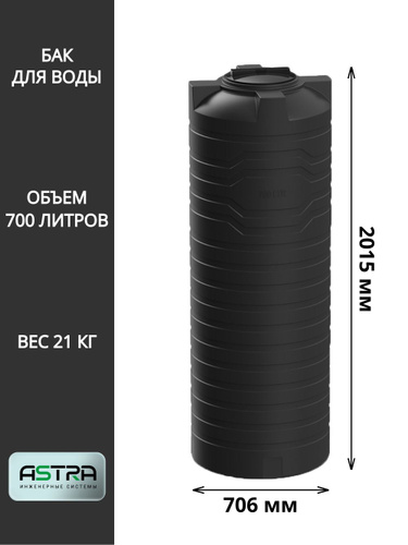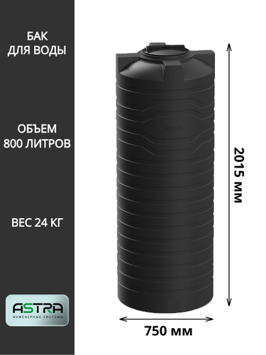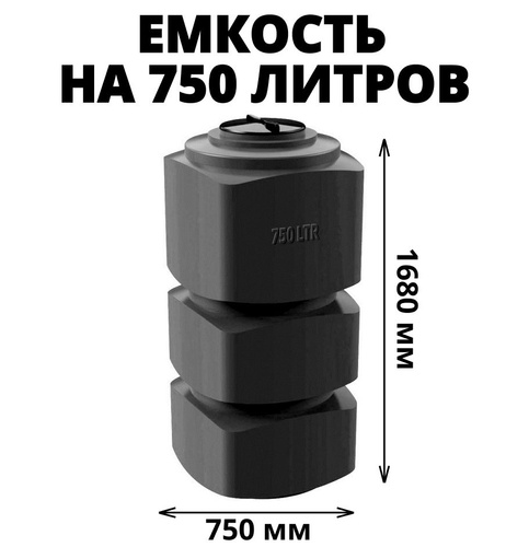 Емкость (бак, бочка) на 750 литров (цвет-черный) вертикальная для питьевой воды, диз. топлива, техн. жидкостей (F-750)