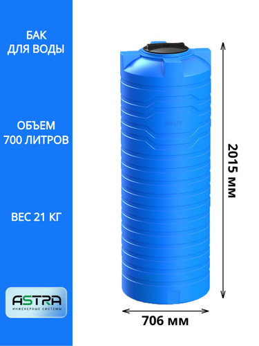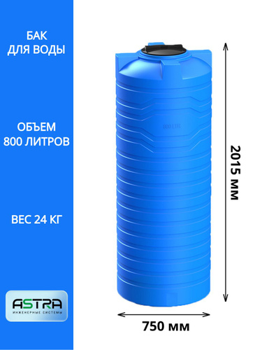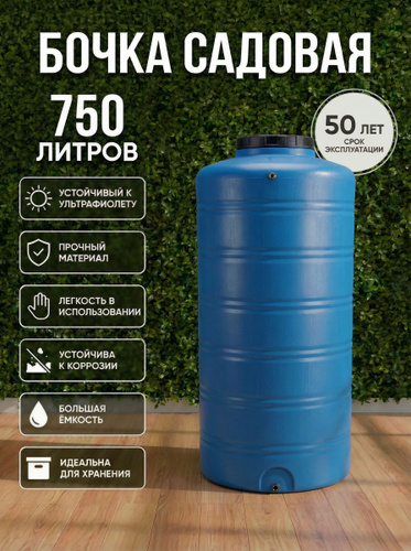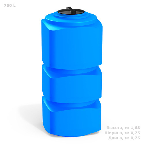Емкость (бак, бочка) на 750 литров (цвет-синий) вертикальная для питьевой воды, диз. топлива, техн. жидкостей (F-750)
