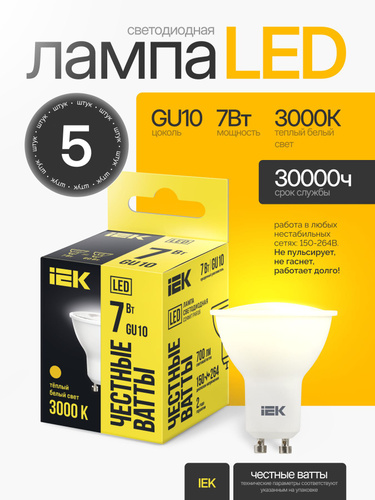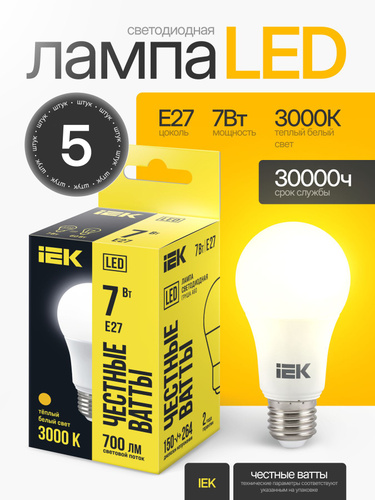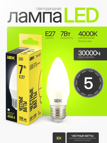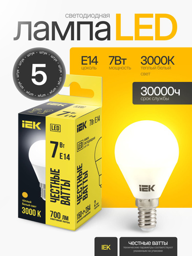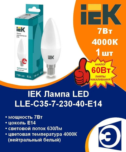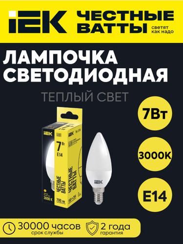 IEK Лампочка, Цоколь:E14, 7 Вт, Светодиодная, 1 шт.