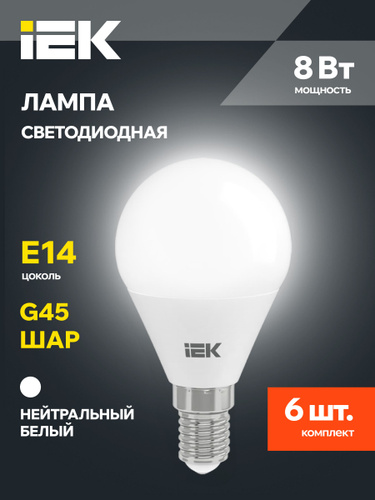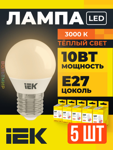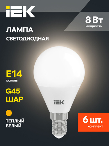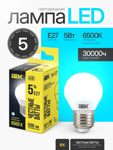 Светодиодная лампа IEK ECO 5W эквивалент 40W 3000K 450Лм Е27 шар (комплект из 6 шт)