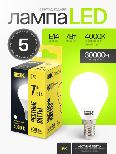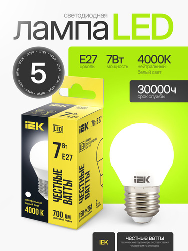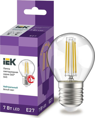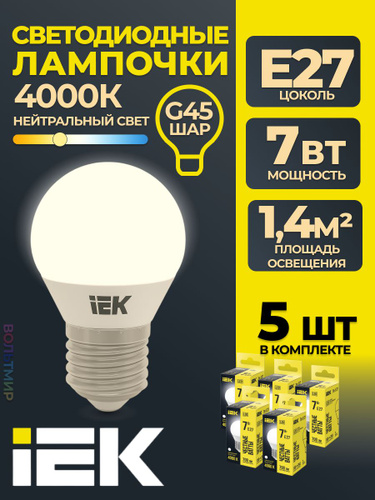 Лампа светодиодная G45 шар 7Вт 230В 4000К E27 IEK, LLE-G45-7-230-40-E27-5