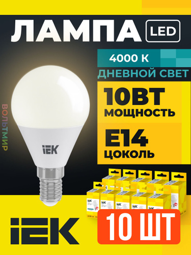 Лампа LED ALFA G45 шар 10Вт 230В 4000К E14 IEK 10 шт
