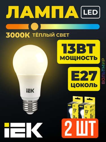 Лампа LED A60 груша 13Вт 230В 3000К E27 IEK 2 шт