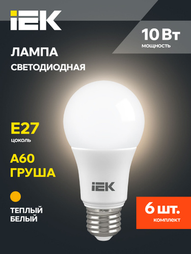 Светодиодные лампочки A60 Груша Е27 10Вт теплый свет 6 шт