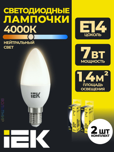 Лампа LED C35 свеча 7Вт 230В 4000К E14 IEK 2 шт