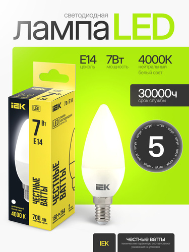 Лампа светодиодная IEK 7Вт свеча Е14 4000К