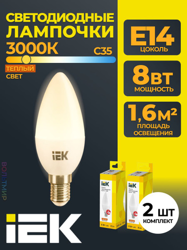 Лампа LED ALFA C35 свеча 8Вт 230В 3000К E14 IEK 2 шт