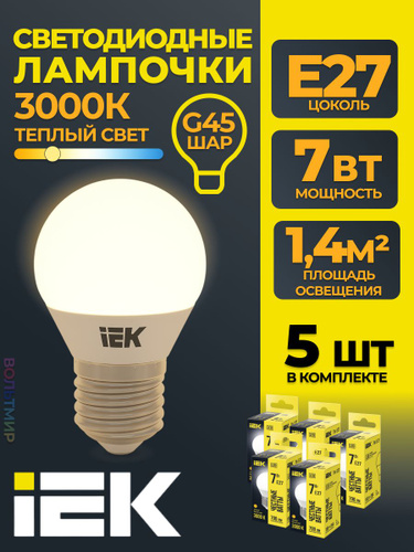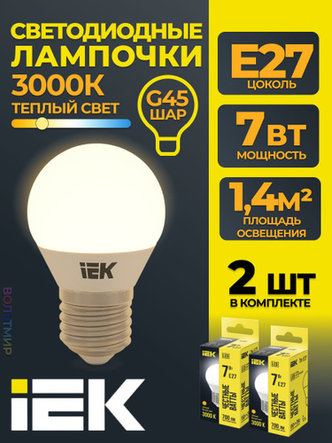Лампа LED G45 шар 7Вт 230В 3000К E27 IEK 2 шт