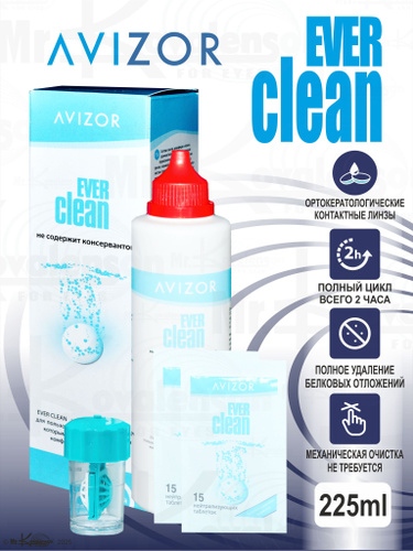 Пероксидный раствор, система для контактных линз Avizor Ever Clean (Авизор Эвер Клин) , 225 мл + 30 таблеток с контейнером для линз