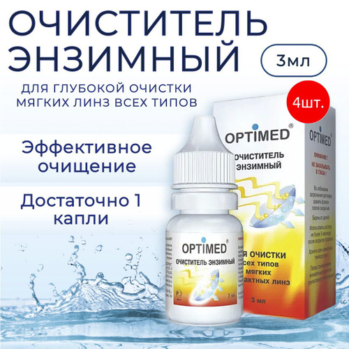 Энзимный очиститель для контактных линз OPTIMED Enzyme, 12 мл (4 упаковки по 3 мл) Оптимед Энзим. Для глубокой очистки линз