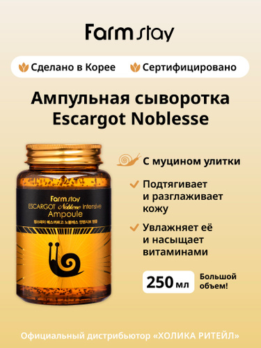 FarmStay. Многофункциональная ампульная омолаживающая сыворотка с муцином королевской улитки / КОРЕЯ / FarmStay Escargot Noblesse Intensive Ampoule, 250 мл.