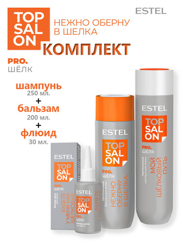 ESTEL TOP SALON PRO.ШЕЛК Протеиновый шампунь 250 мл. + Протеиновый бальзам 200 мл. + Флюид-шелк 30 мл.