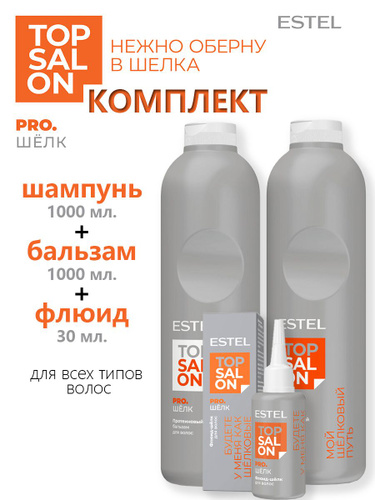 ESTEL TOP SALON PRO.ШЕЛК Шампунь 1000 мл. +Бальзам 1000мл.+Флюид-шелк для ухода за волосами 30 мл.