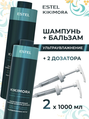 ESTEL PROFESSIONAL Набор KIKIMORA для увлажнения и восстановления волос, торфяной (Шампунь 1000мл + Бальзам 1000мл + Насосный дозатор для флакона - 2 шт.)