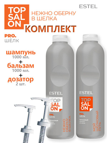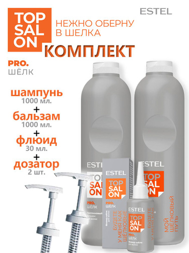 ESTEL TOP SALON PRO.ШЕЛК Комплект для волос - Протеиновый шампунь 1000 мл. + Протеиновый бальзам 1000мл.+ Дозатор 2 шт+Флюид-шелк для ухода за волосами 30 мл.