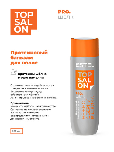 ESTEL PROFESSIONAL Протеиновый бальзам TOP SALON PRO.ШЁЛК для шелковистости и блеска всех типов волос, 200мл