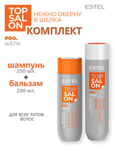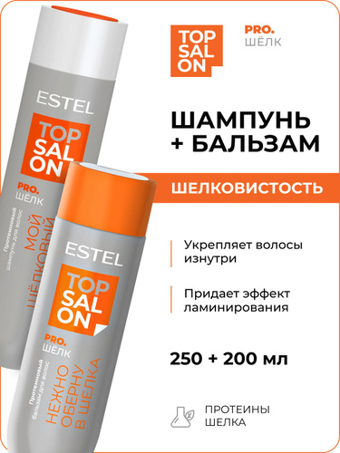 ESTEL TOP SALON PRO.ШЕЛК Протеиновый шампунь для волос 250мл. + Протеиновый бальзам для волос 200мл.