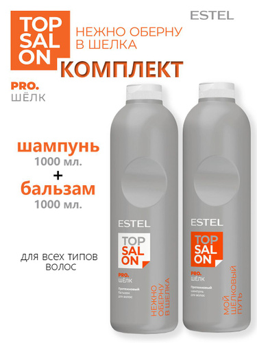 ESTEL TOP SALON PRO.ШЕЛК Протеиновый шампунь 1000 мл. + Протеиновый бальзам 1000мл.