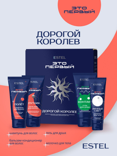 Estel Подарочный набор для волос и тела ЭТО ПЕРВЫЙ увлажняющий "Дорогой Королёв" Шампунь 250 мл.+Бальзам 250 мл.+Гель для душа 250 мл.+Молочко для тела 150 мл.
