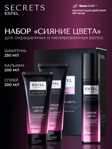 ESTEL Подарочный набор СИЯНИЕ ЦВЕТА для волос (шампунь 250мл + бальзам 200мл + спрей 200мл) / SECRETS