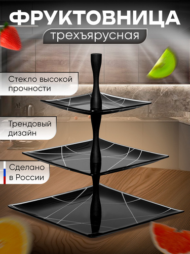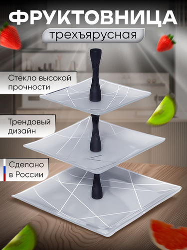 Блюдо-этажерка, фруктовница 3 яруса "Fresh Taste", 26х26х34 см, Nouvelle