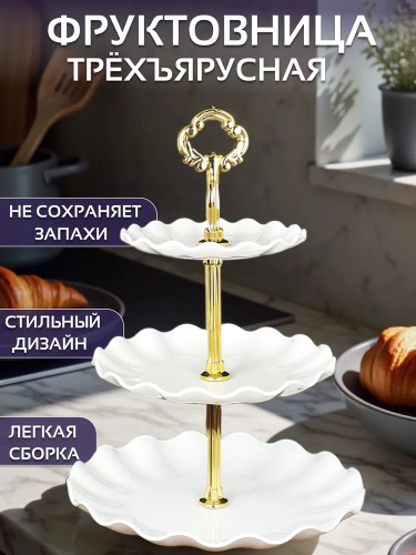 Ваза для фруктов 3-х ярусная Классика белая