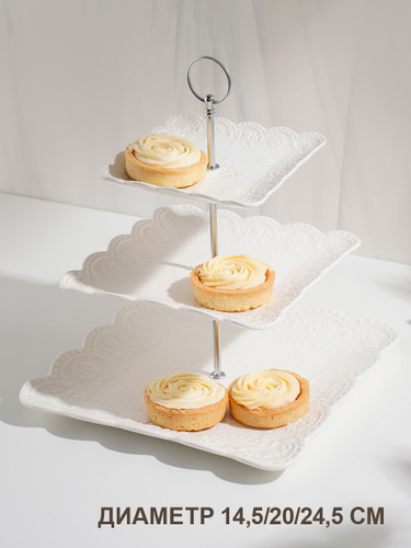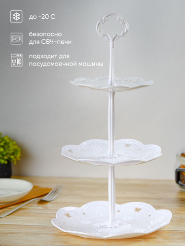 Блюдо 3-х ярусное Доляна "Сьзен", этажерка для фруктов и десертов фарфоровая