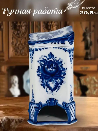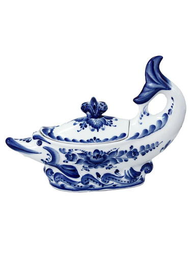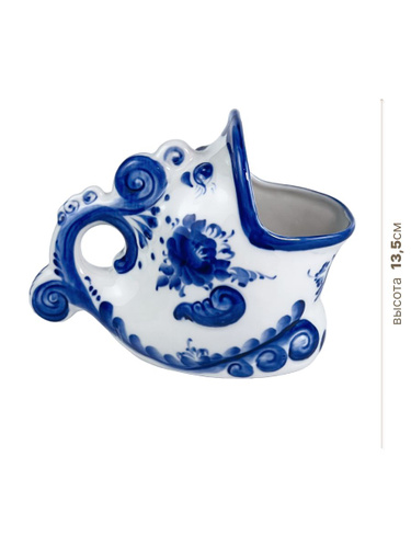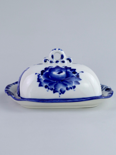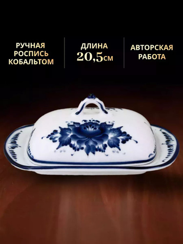 Масленка фарфоровая. Галактика г.Гжель. "Классическая". Ручная роспись. 8,5х20,5х13 см.