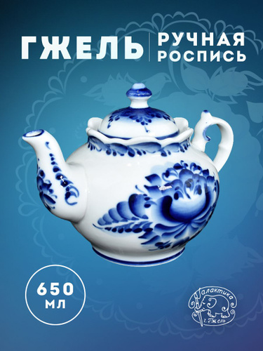 Чайник заварочный 650 мл "Хуторок". Галактика г.Гжель. Фарфор, ручная работа