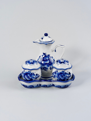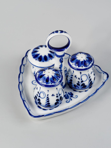 Набор для специй, высота 12 см. Объединение Гжель. Авторская роспись. Фарфор.
