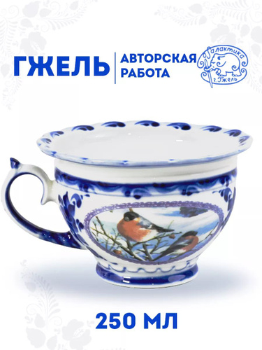Чашка "Подарочная.Снегири" 250 мл, фарфор, ручная роспись. Галактика г.Гжель