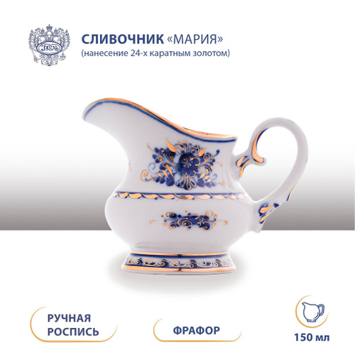 Сливочник. Объединение "ГЖЕЛЬ". "Мария" h-85мм, v-150мл, 24-х каратное золото, фарфор
